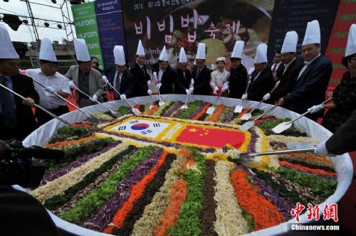 9月12日,沈陽一家餐廳制作了一份超大的韓式拌飯,可供2015人分食,這么大的拌飯真的可以稱的上世界上最大的韓式拌飯了。