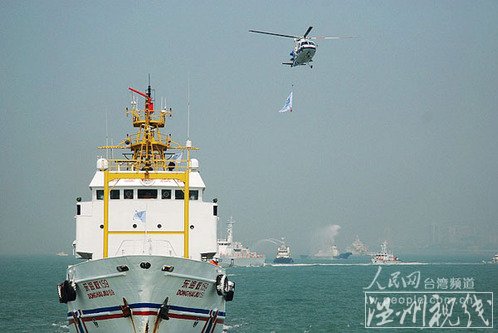 海峽兩岸海上搜救部門在臺灣海峽的廈門、金門附近海域舉行聯(lián)合搜救演練。兩岸10余艘船只和3架直升機(jī)參與的這次大規(guī)模海陸空聯(lián)合演練旨在保障“三通”,維護(hù)臺灣海峽航運(yùn)安全。(來源:人民網(wǎng))