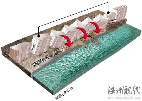 據(jù)悉,昨日上午9時(shí)左右,這7棟宿舍樓房就相繼出現(xiàn)了裂縫、傾斜等情況。發(fā)現(xiàn)情況后,居民們立即相互告知,通知險(xiǎn)情,從屋內(nèi)搬離貴重物品,做好各種準(zhǔn)備。到了下午4時(shí),這7棟宿舍樓終于在不斷加劇的傾斜中重心偏離,一棟接一棟,陸續(xù)轟然倒在江中。
