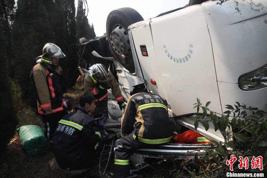 10月7日中午青銀高速淄博段發(fā)生一起客車翻車事故,車禍導(dǎo)致13人死亡,9人重傷。據(jù)青銀高速公路淄博交警大隊(duì)大隊(duì)長(zhǎng)王紀(jì)國(guó)介紹,7日11點(diǎn)44分左右,牌照魯A96925大客車自東向西沿青銀高速行駛,至銀川方向228KM+530M處時(shí),與一輛轎車發(fā)生刮擦后,從銀川方向穿越中央活動(dòng)護(hù)欄,駛?cè)雽?duì)向車道,與濟(jì)南旅順旅游汽車有限公司的魯A18526號(hào)大客車發(fā)生碰撞,致使后者翻入高速公路邊溝。車禍造成6人當(dāng)場(chǎng)死亡,7人搶救無(wú)效死亡,9人重傷。