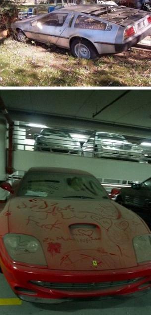 迪拜豪車遭遺棄 車上落滿了灰塵
