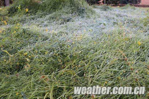 秋天也經(jīng)常會(huì)出現(xiàn)霜凍天氣,現(xiàn)在正值秋收季節(jié),出現(xiàn)霜凍天氣對(duì)作物的影響是很大的。近日受冷空氣影響,甘肅山丹地區(qū)出現(xiàn)了早霜凍,連續(xù)4天的低溫天氣使上萬(wàn)畝油菜受災(zāi)。今日(6日),當(dāng)?shù)貧鉁匾鸦厣?/p>