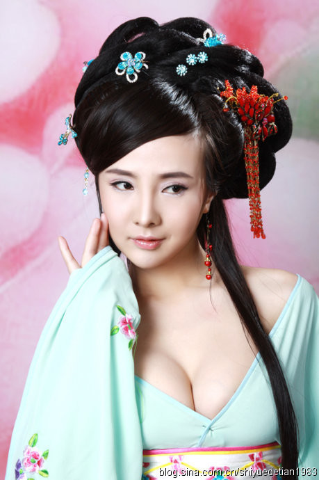 最新藝術照楊貴妃古裝圖片中,干露露刻意暴露出胸部,以展現“G奶”吸引大眾眼球。不過,據說唐朝的服飾是很暴露的,而且文胸似乎也是楊貴妃發明的,而且音樂劇《大唐貴妃》上演時,唐明皇和楊貴妃穿著肉色睡衣,宮女穿著肚兜和蕾絲褲,這似乎能證明唐朝的女人真的如同現在的干露露一樣開放性感?